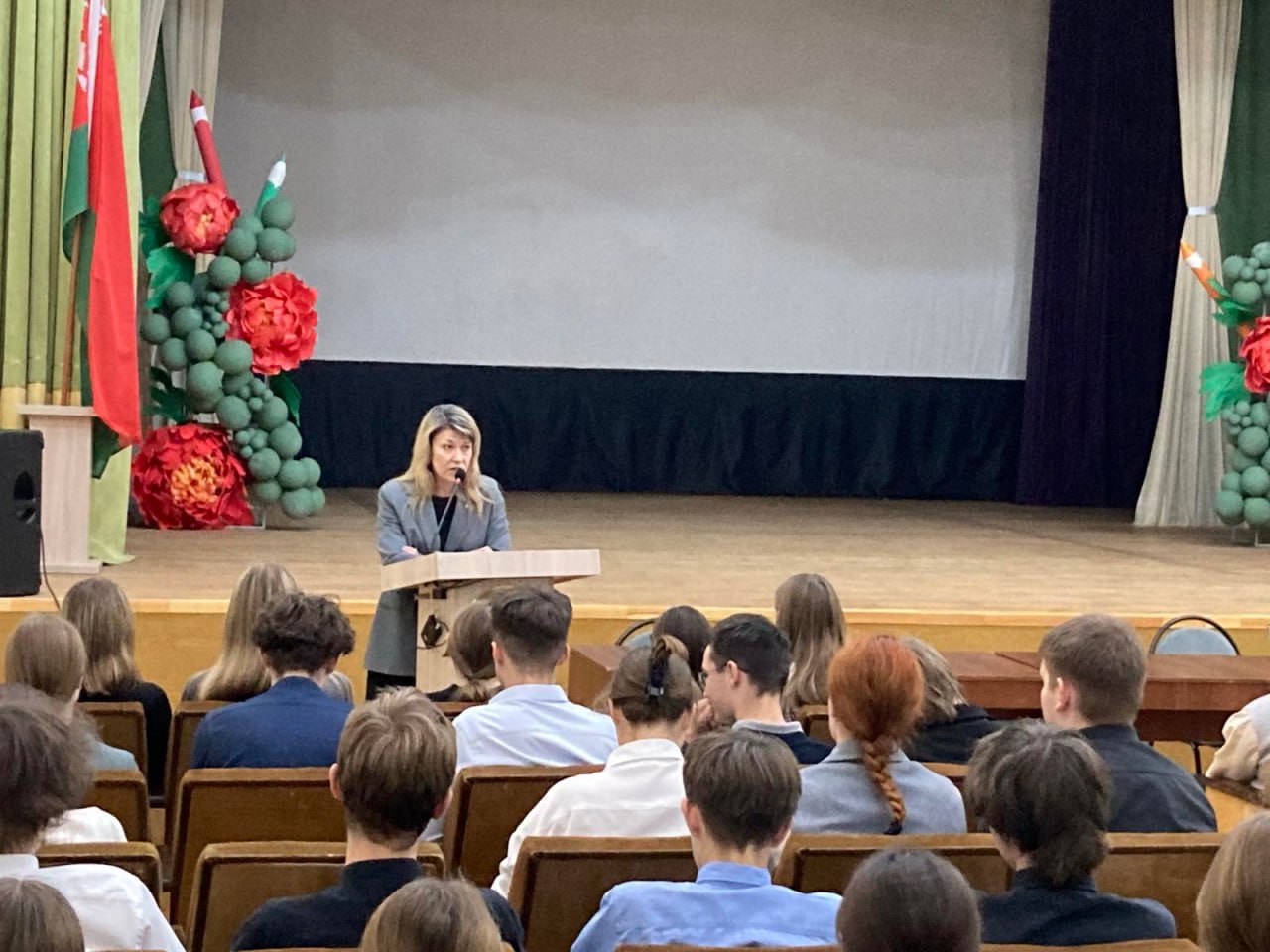 C праздником первоклассников и учащихся одиннадцатых классов поздравили директор школы Дёмина А.В., начальник электросталеплавильного цеха № 1 ОАО «БМЗ –